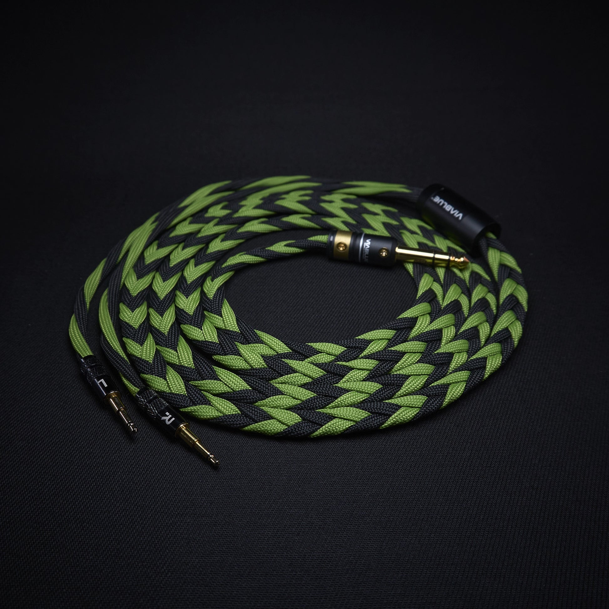 Braided custom cable for ZMF, connected to tube amps